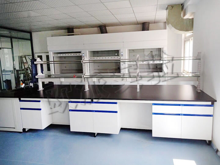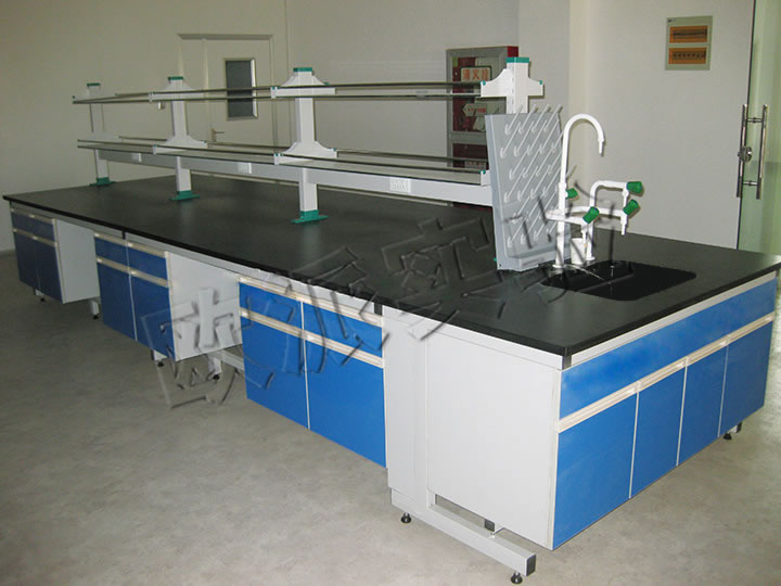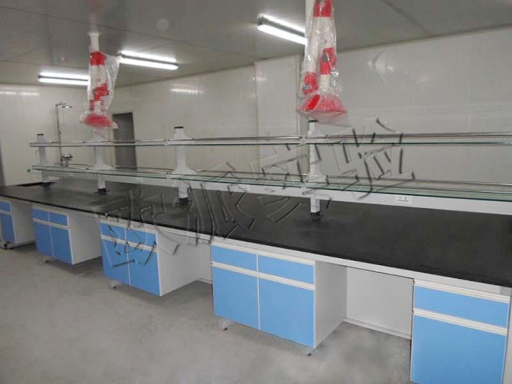 實驗臺柜整體為鋼木結構。主體結構以C型鋼架支撐,柜體為吊裝式。前梁采用寶鋼冷軋鋼板折彎成型。